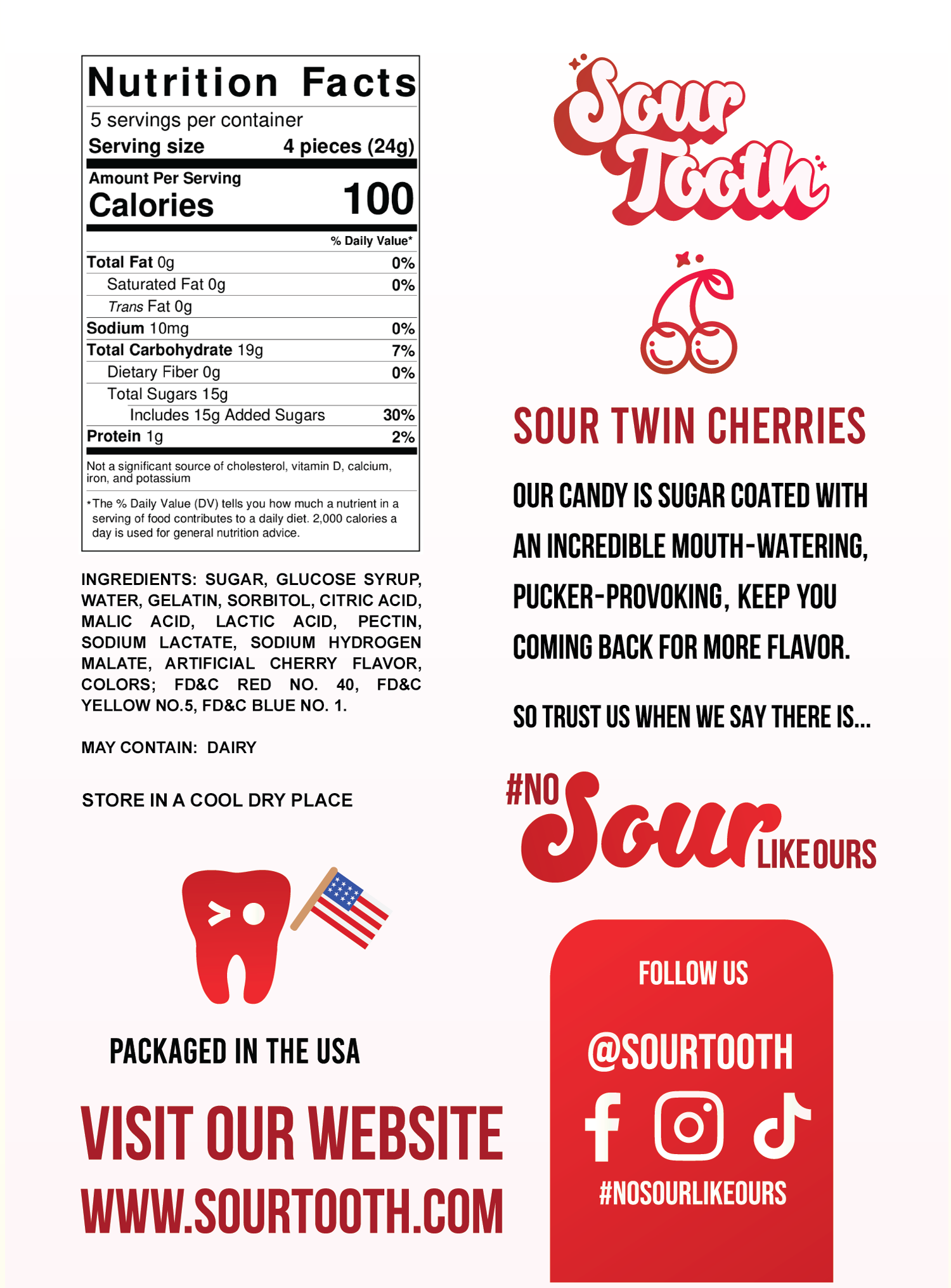 It will be difficult to tie this stem with your tongue... because this gummi will be gone before you know it! We are very proud to introduce our sour Twin Cherries!